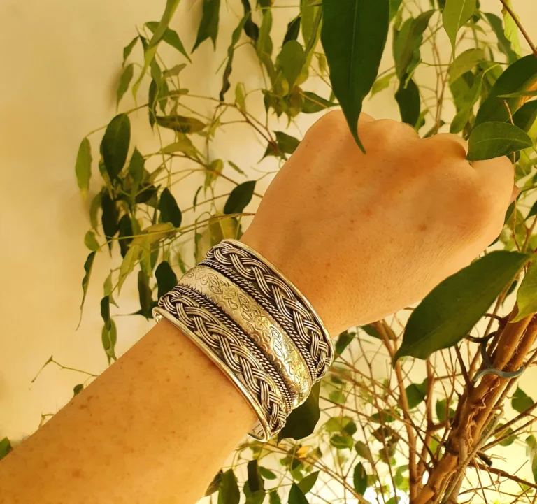 Textured Ethnic Silver Cuff Bracelet