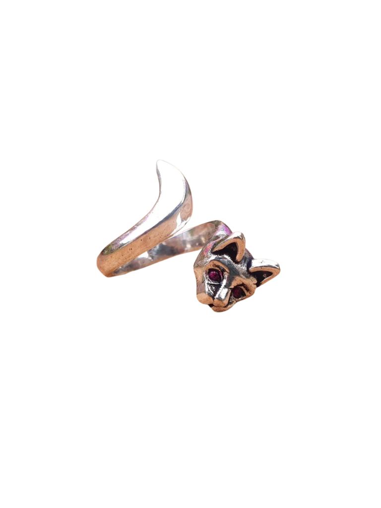Silver Cat Ring with Pink Eyes