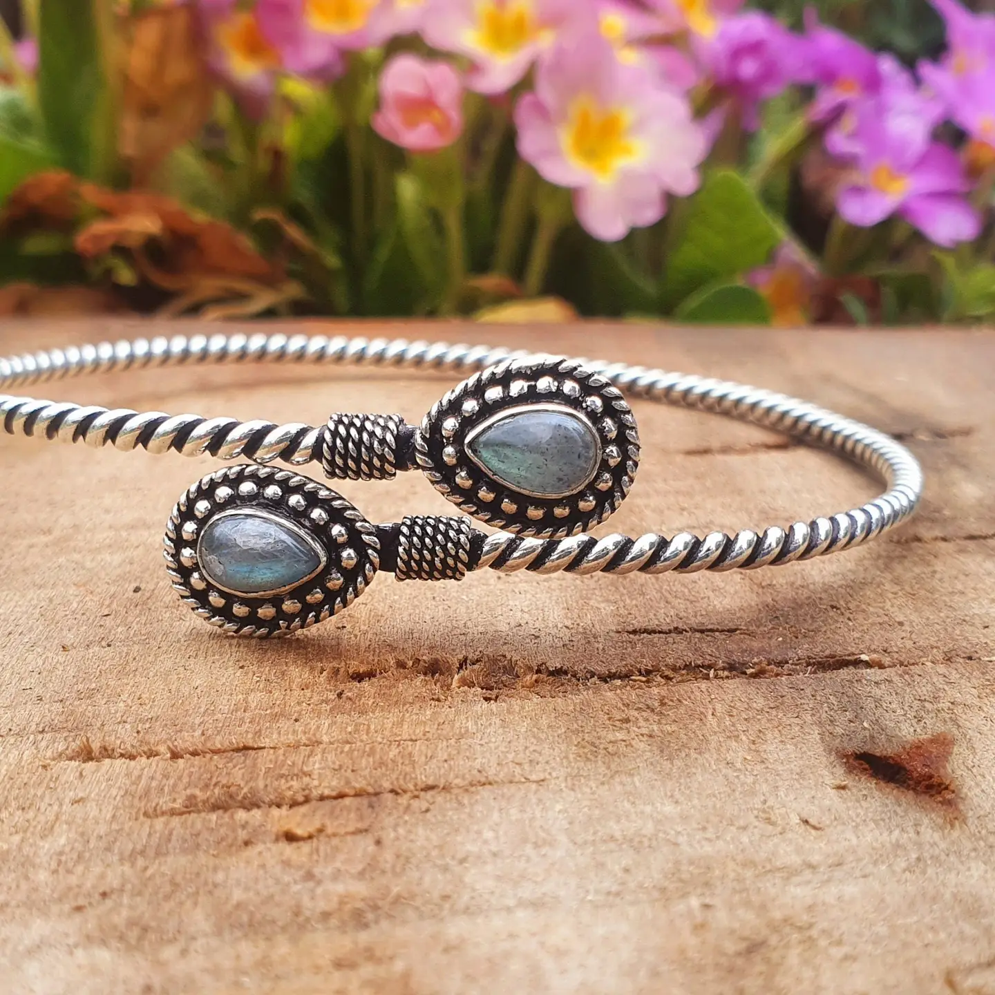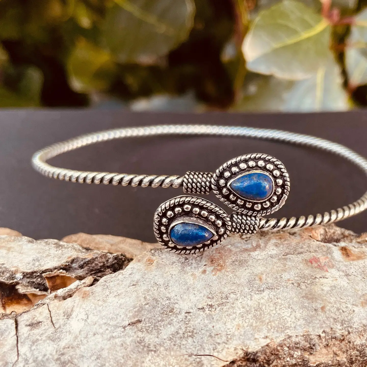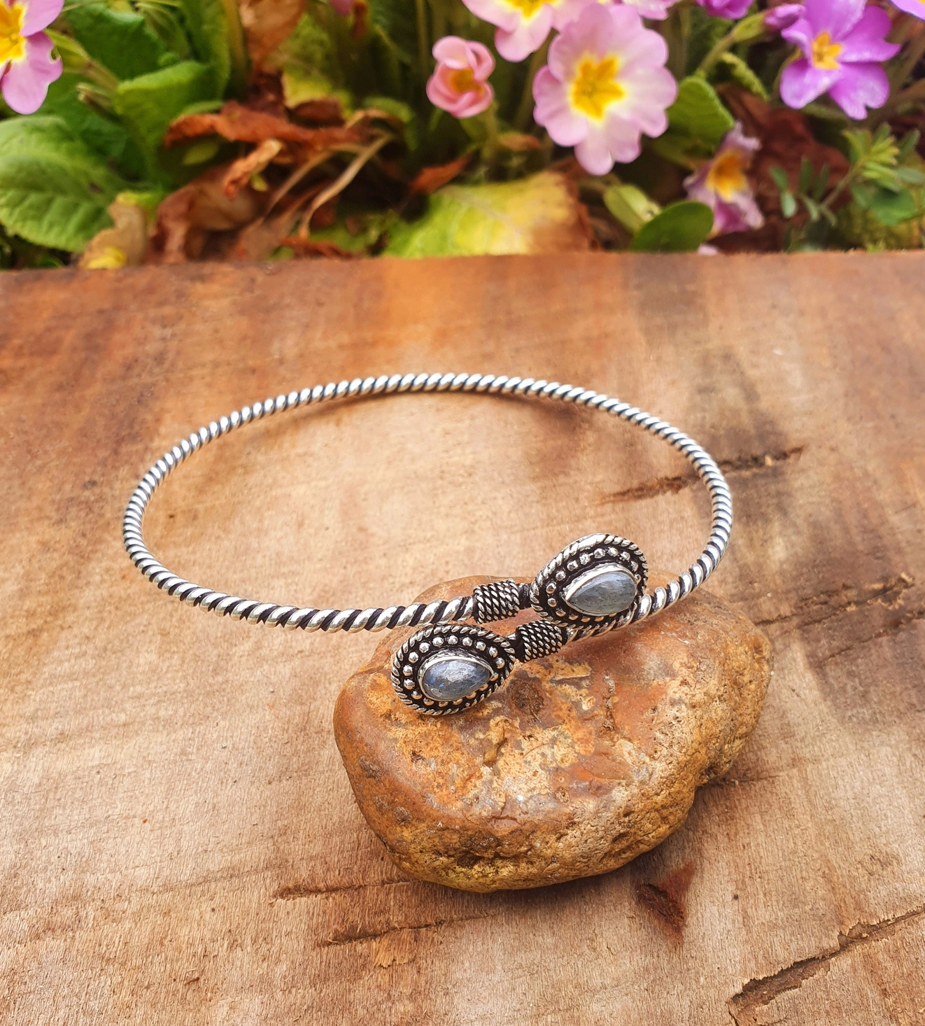 Lightweight and crafted from high-quality silver-plated metal, 100% free from nickel and lead. Available with Lapis Lazuli or Labradorite natural stone.
