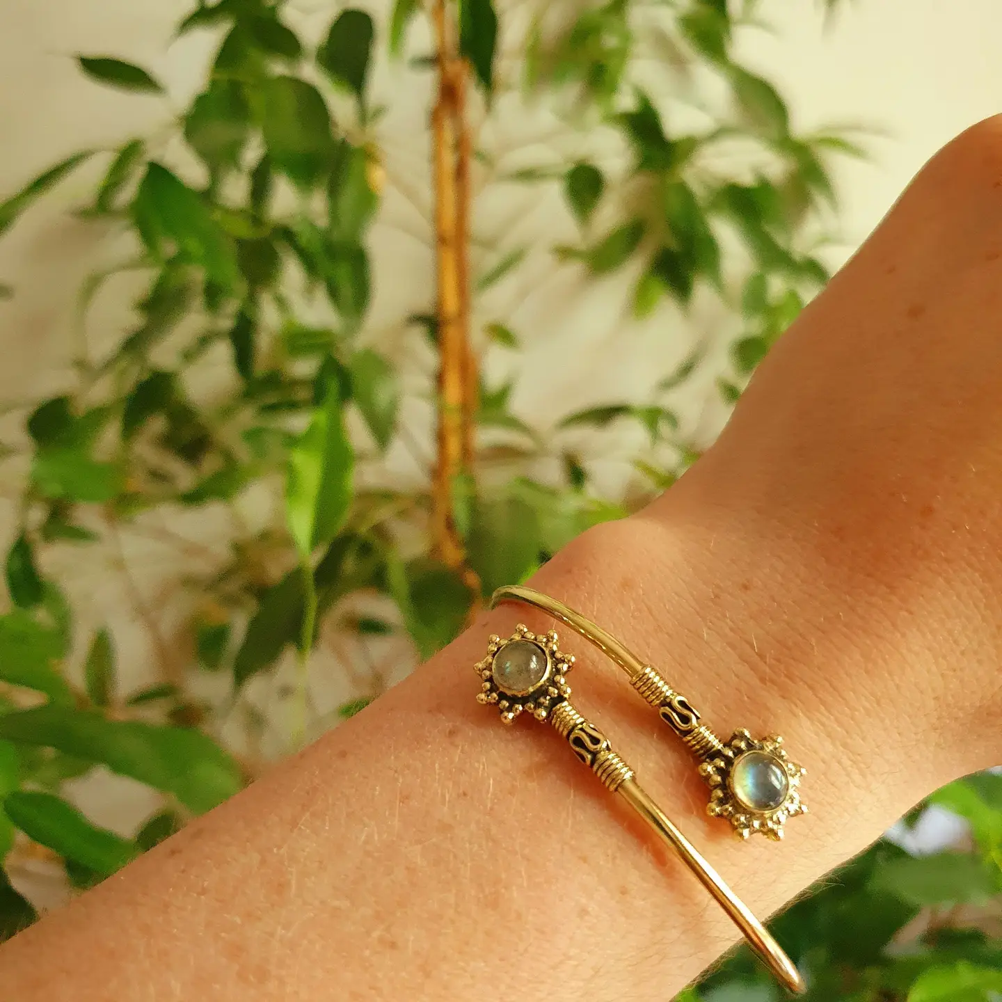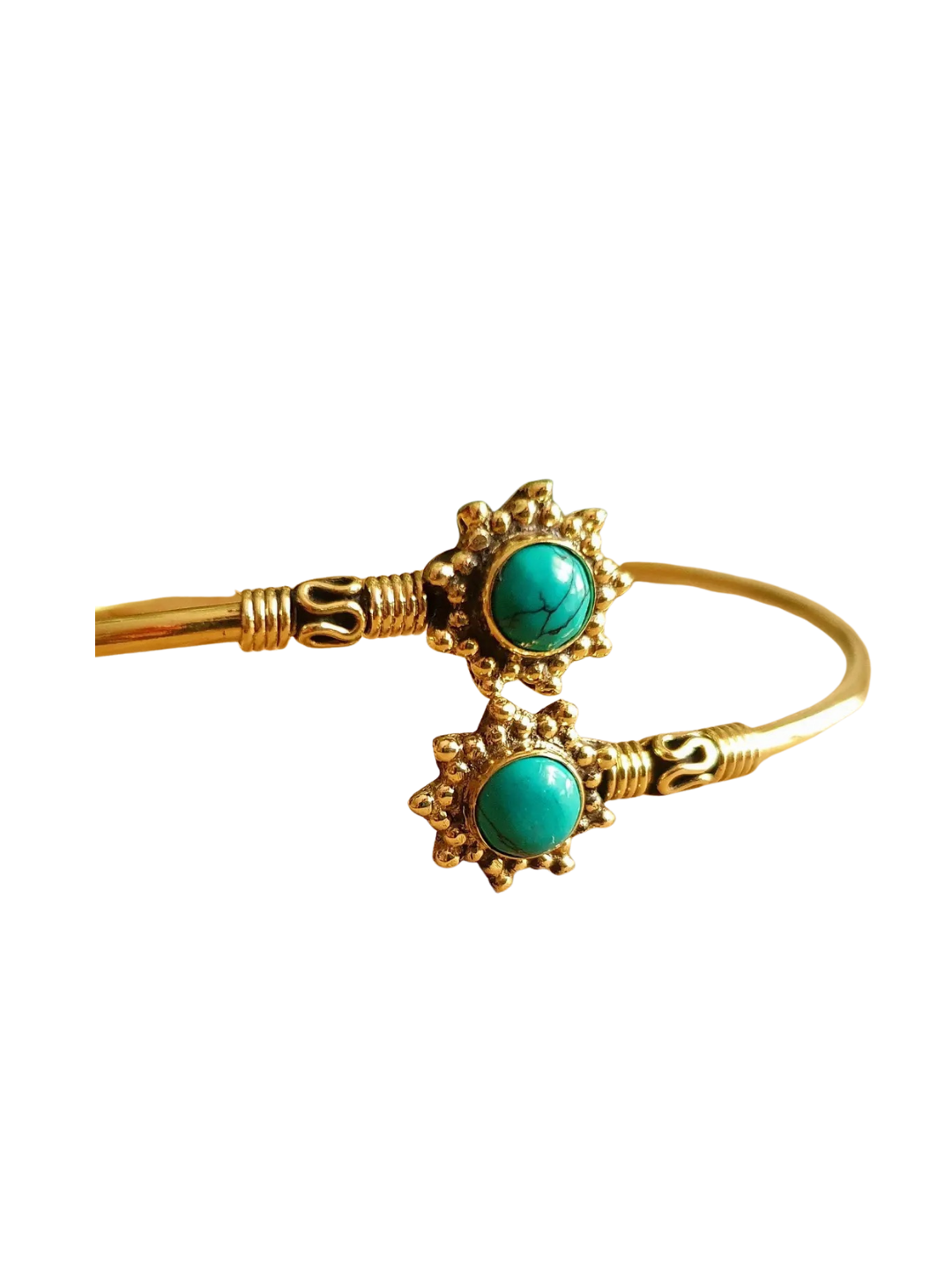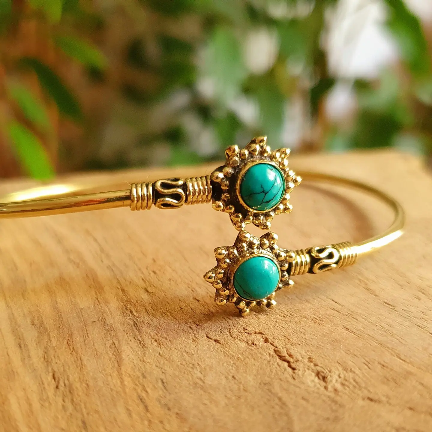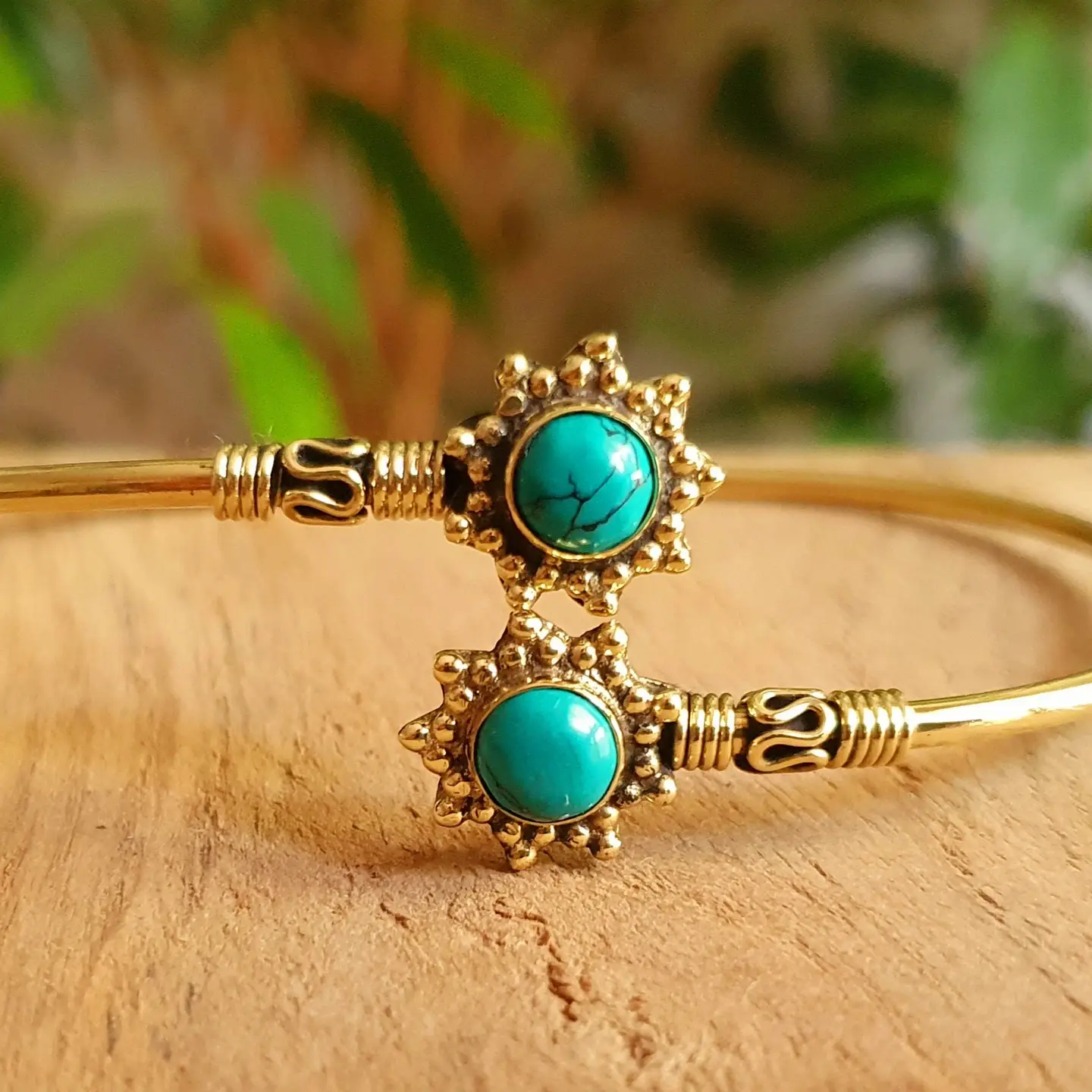 Bali style brass bracelet with double turquoise. High quality brass, 100% free from nickel / lead.