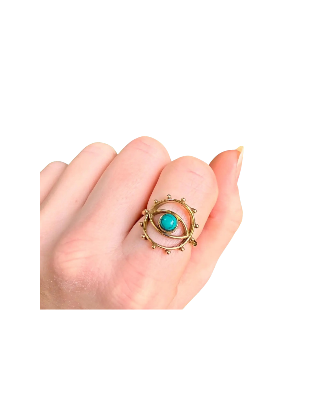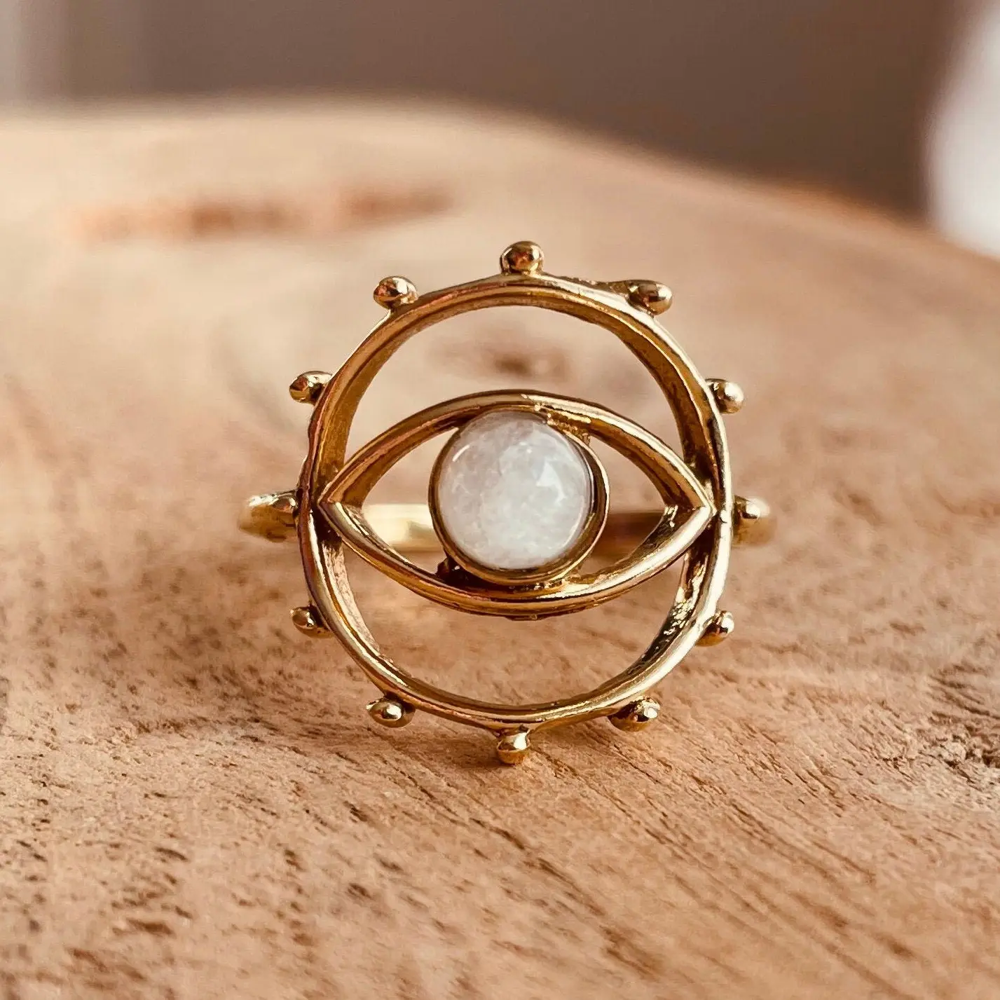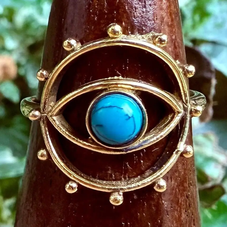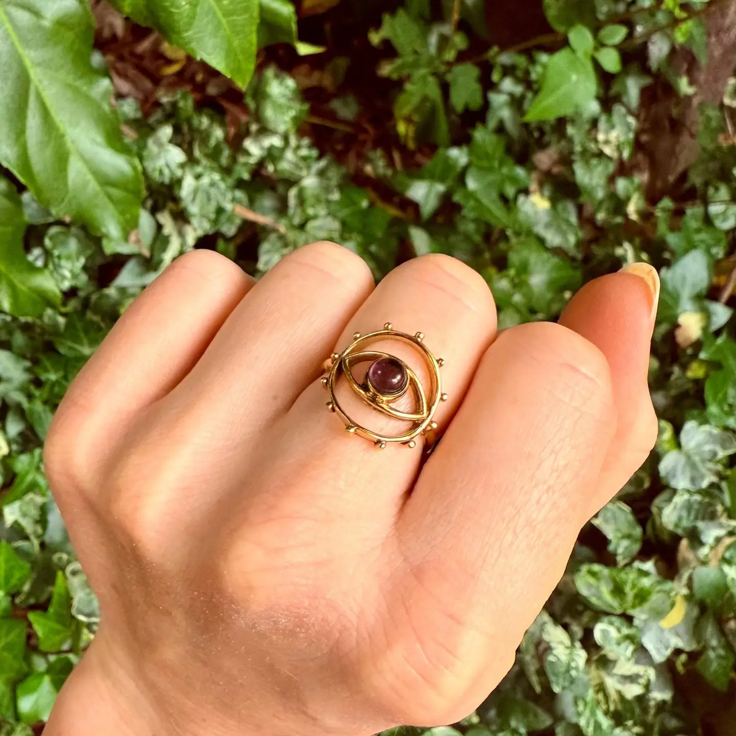A delicate eye design featuring your choice of natural gemstone — Amethyst, Turquoise or Moonstone— for a subtle yet meaningful touch.