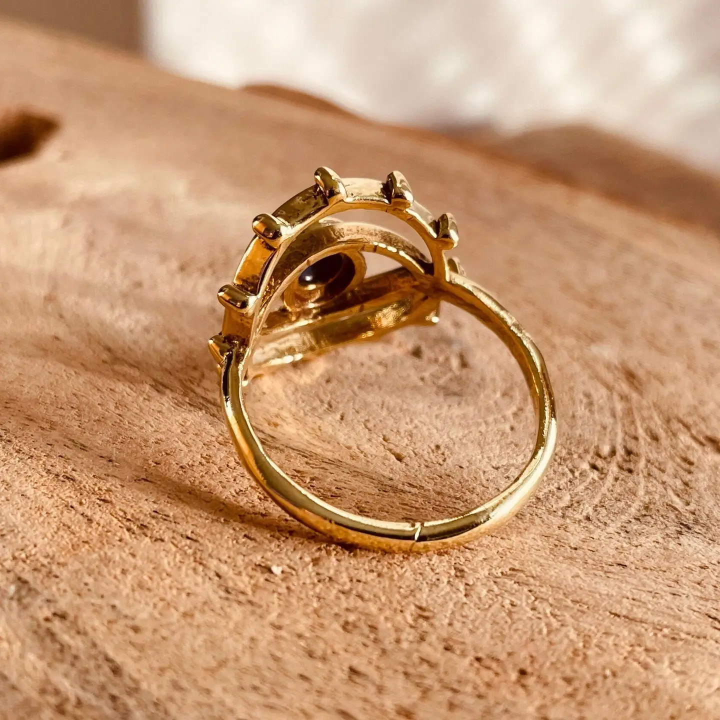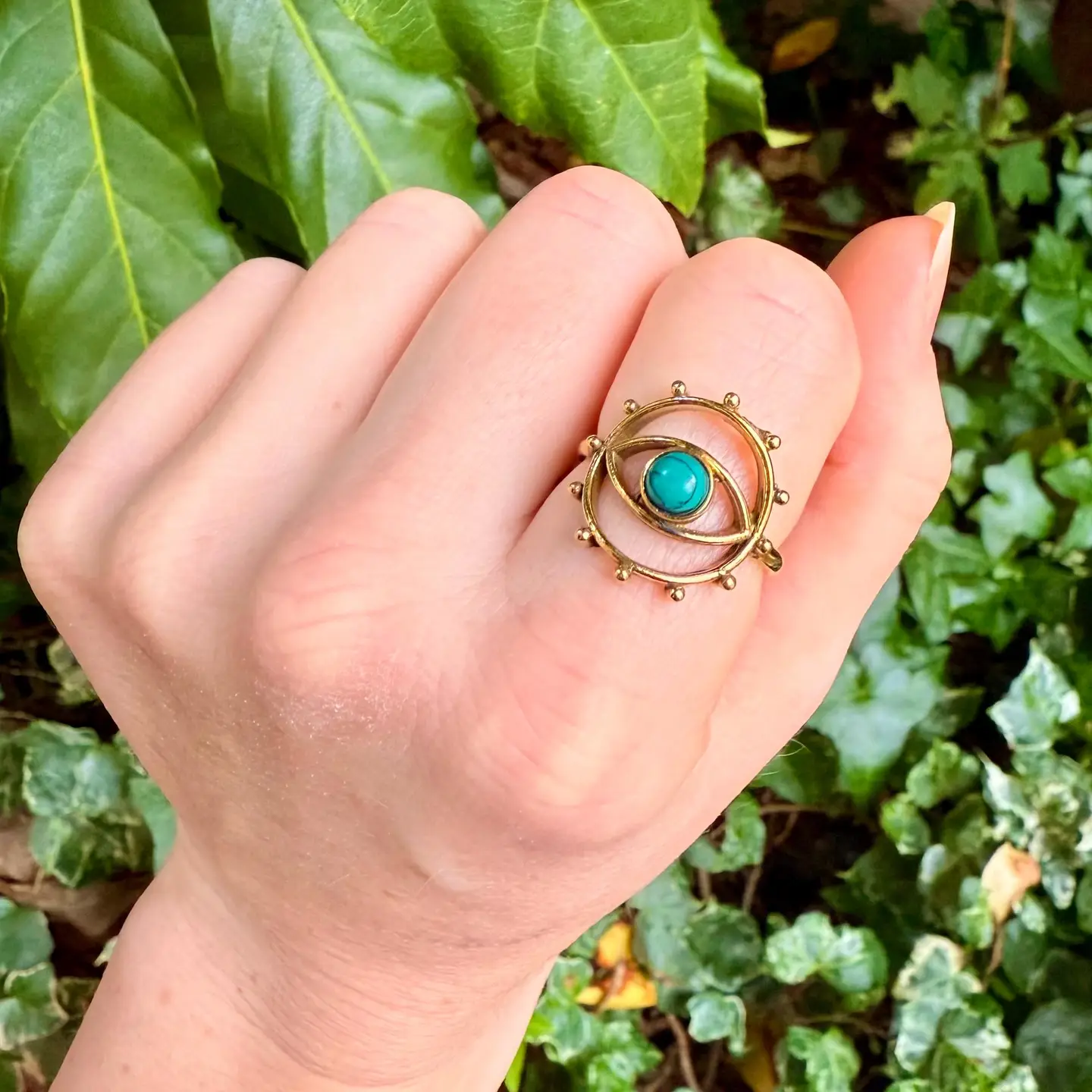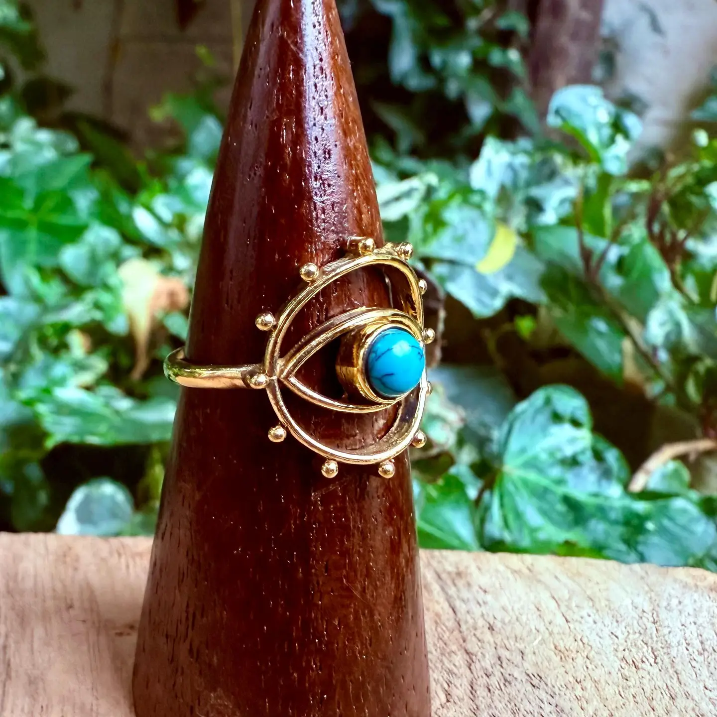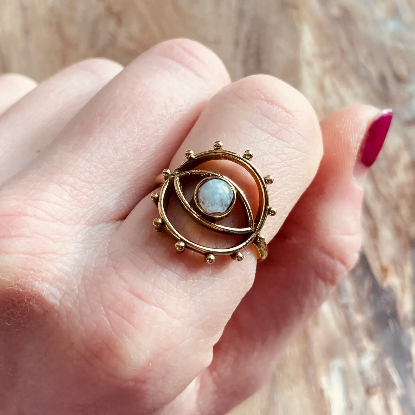 A delicate eye design featuring your choice of natural gemstone — Amethyst, Turquoise or Moonstone— for a subtle yet meaningful touch.
