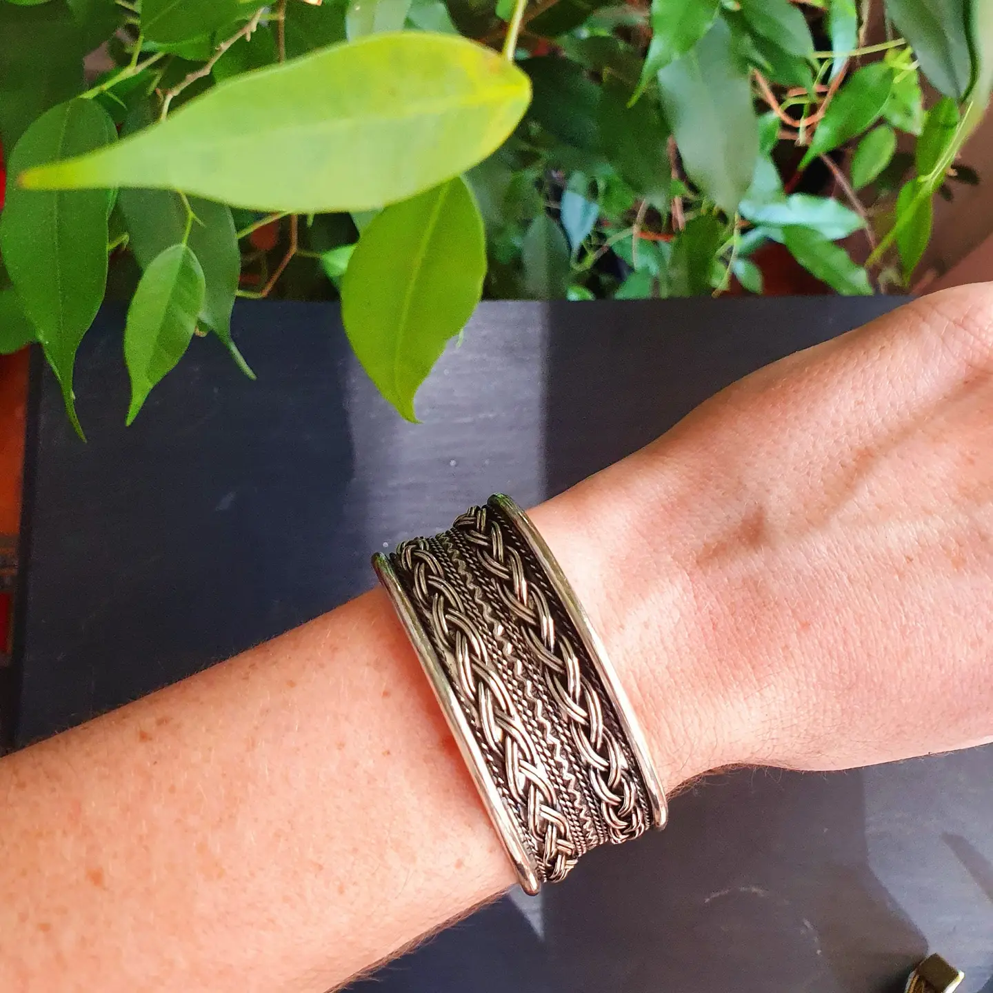 Small, adjustable cuff bracelet with a subtle Celtic design — perfect for both women and men.