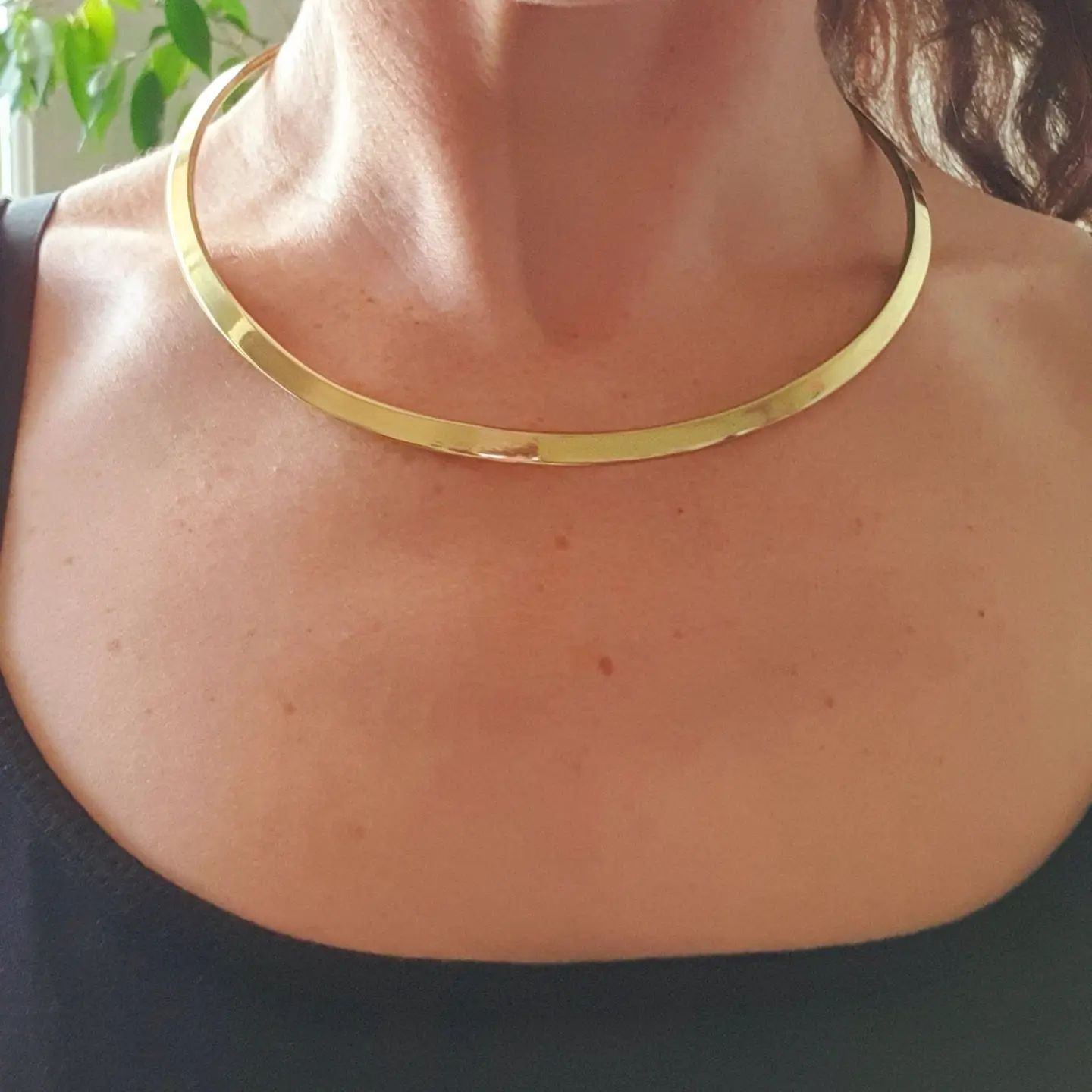 Minimalist choker necklace, lightweight and comfortable for everyday wear.