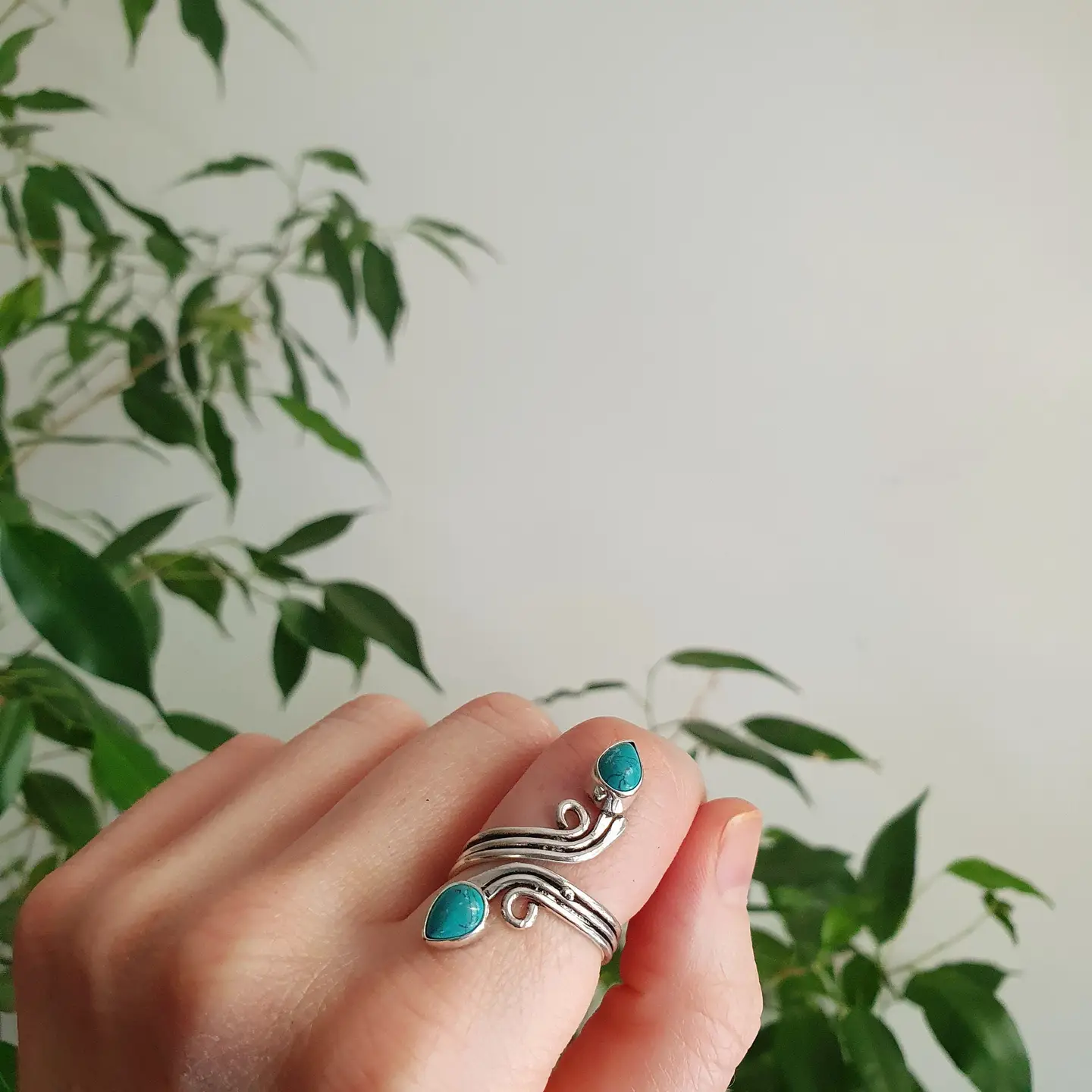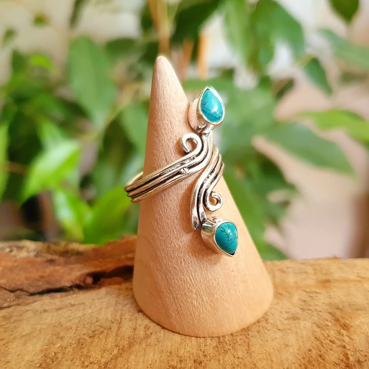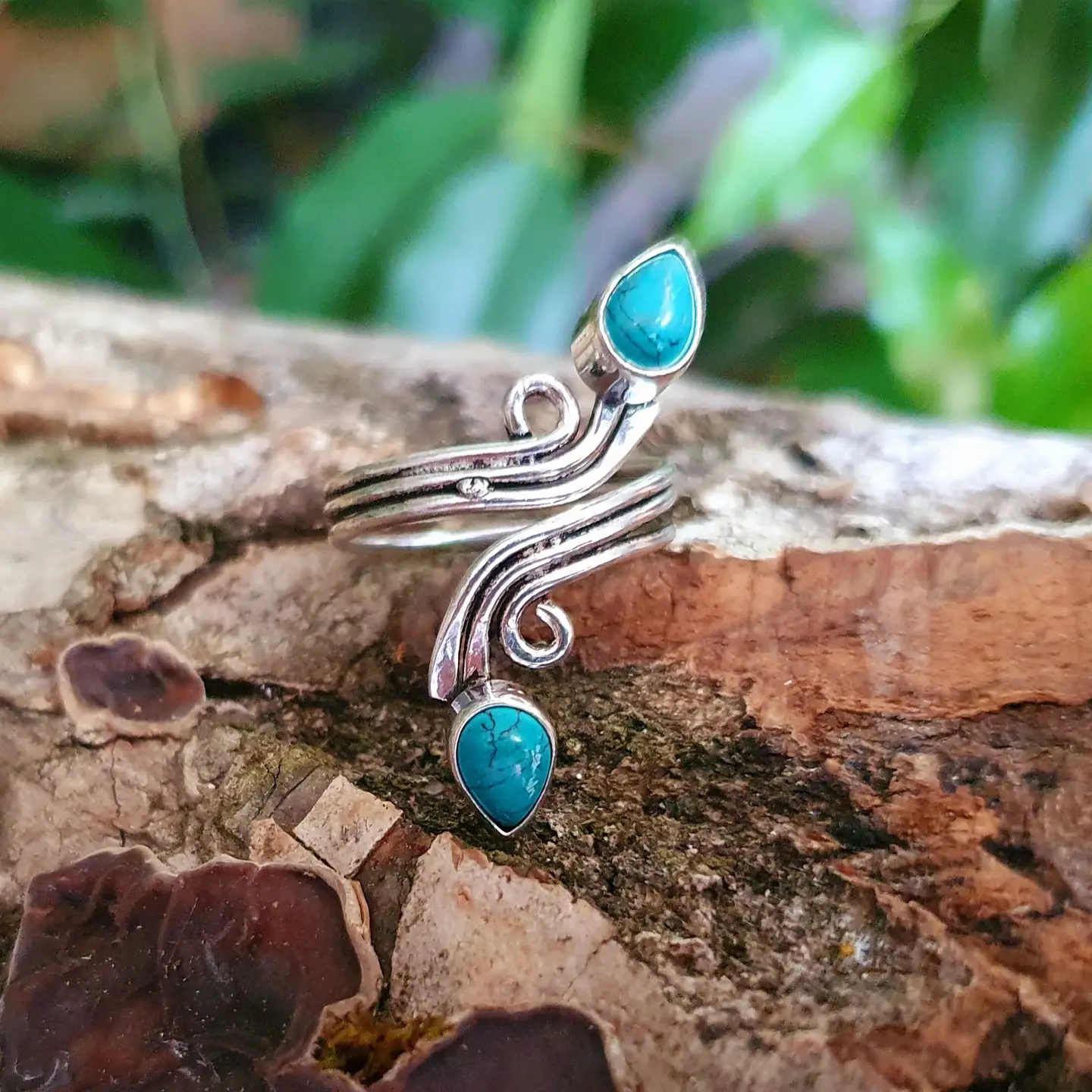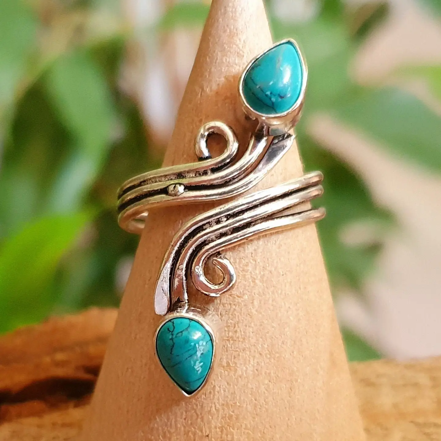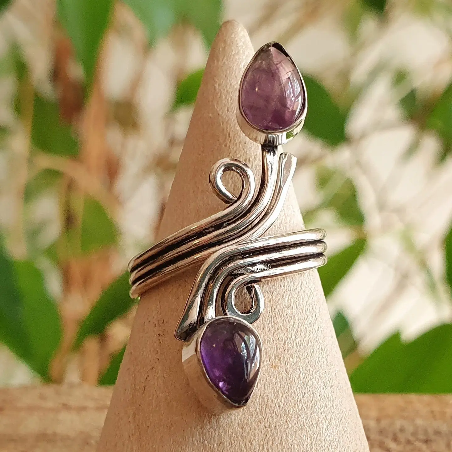 Stunning spiral ring featuring two natural stones — choose between Amethyst or Turquoise — for a bold and elegant look.