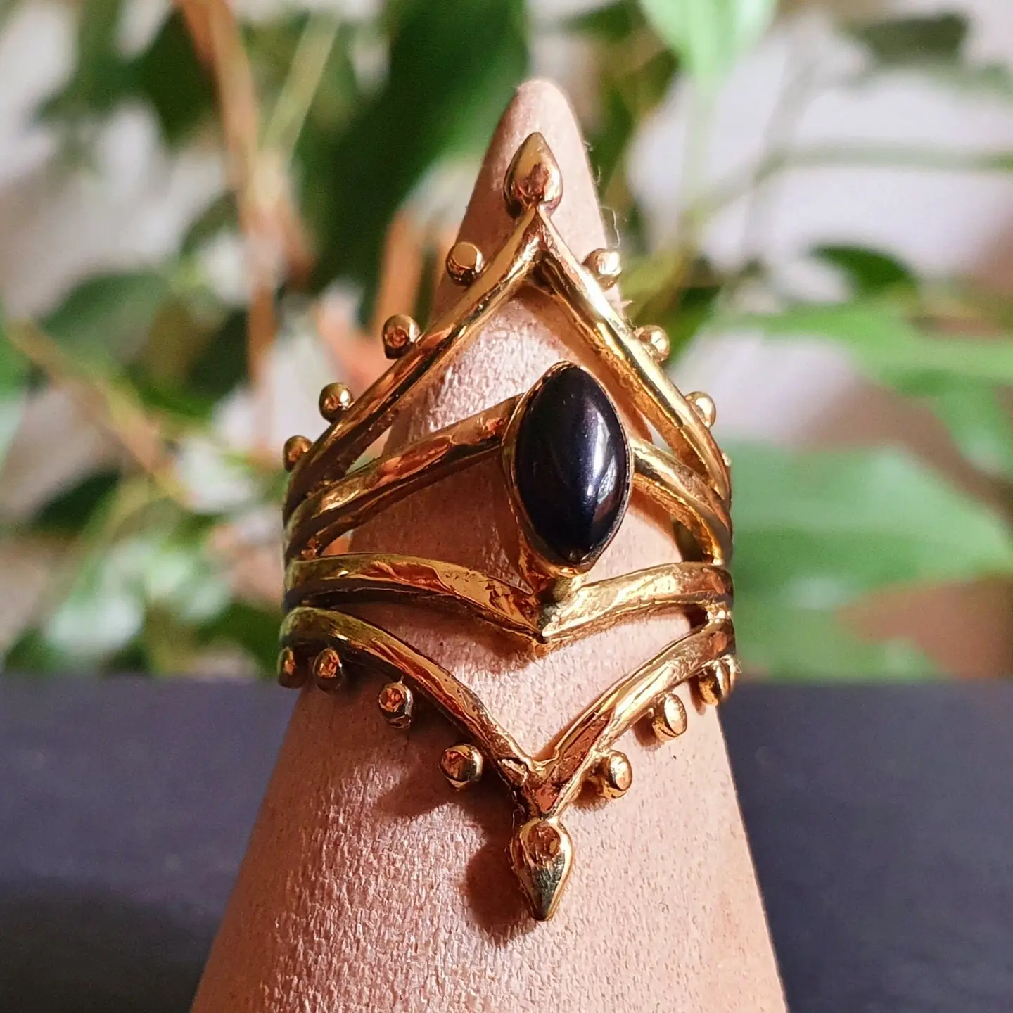 Beautiful ethnic-inspired ring crafted in high-quality brass, featuring a natural Black Onyx stone.