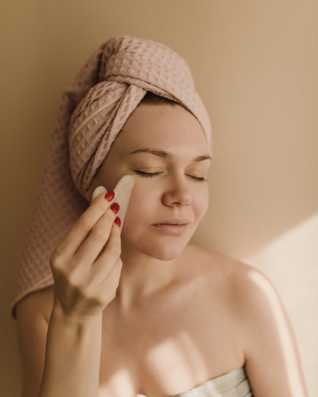 Gua Sha is an ancient technique of face massaging with a scraping motion. It’s known to stimulate circulation, produce collagen, decrease swelling and inflammation, firm the skin, brighten the complexion, release tension, and shape facial muscles. This is done by promoting blood circulation and lymphatic movement. The Gua Sha also has a detoxifying effect and is therefore excellent in combination with your skin care routine.