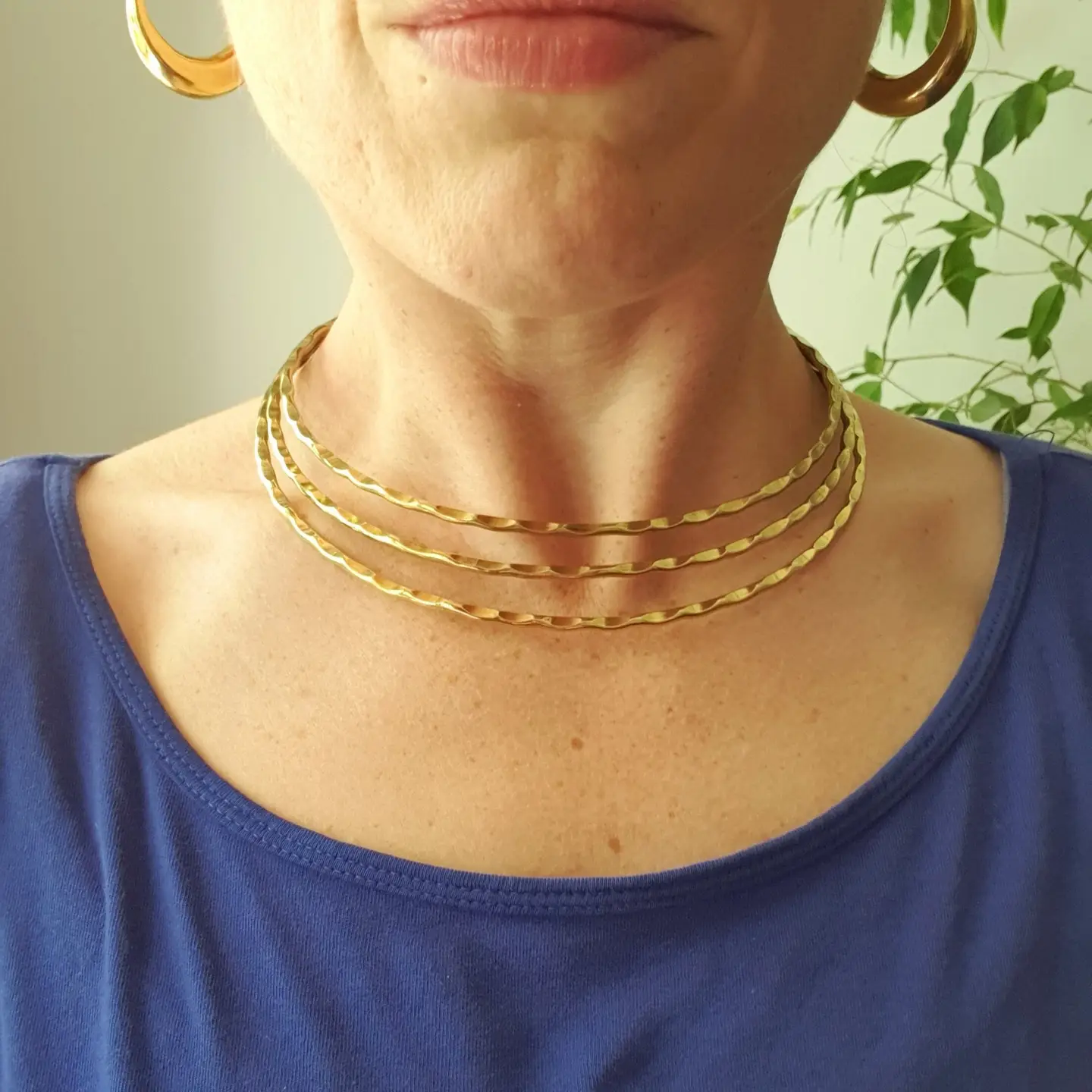 Set with three bars, this elegant choker brings a refined yet modern touch to any look. Lightweight and comfortable to wear throughout the day.