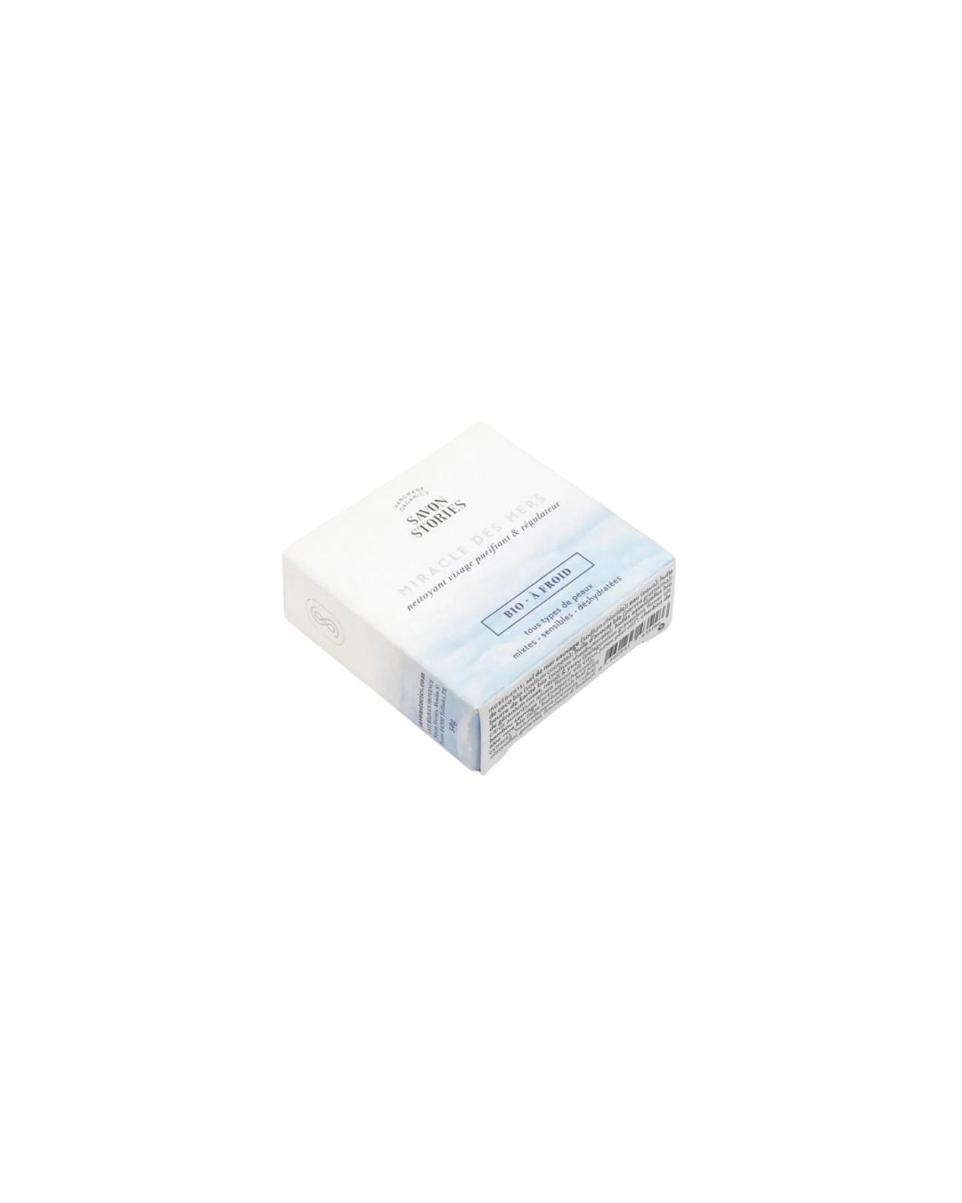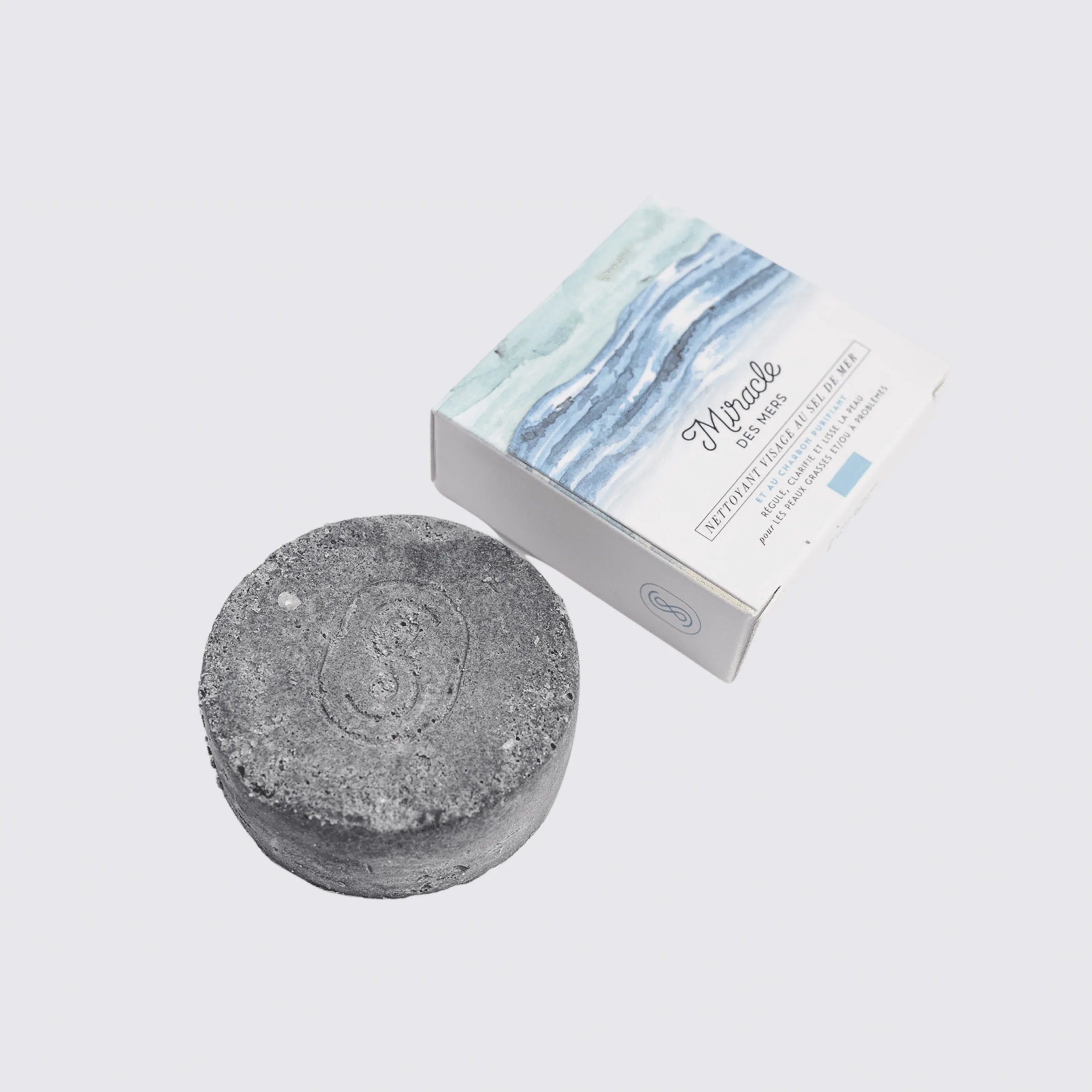 Le Miracle des Mers is a cleansing and regulating solution based on unrefined sea salt. Ideal for purifying your face, it is particularly suitable for oily and acne-prone skin. The purifying and detoxifying properties of Miracle des mers are enhanced tenfold by essential oils of Geranium bourbon, Neroli and Yuzu, bursting with repairing and protective antioxidants. Organic Avocado and Coconut oils, combined with unrefined Shea butter, counteract the external aggressions that sensitive skin must face. These organic active ingredients nourish, protect and stimulate skin cell renewal. Acting as a genuine spa treatment thanks to its high wild sea salt content, it offers skin deep cleansing by unclogging pores and reducing acne imperfections. This sea salt soap also contains bamboo charcoal, which rebalances the excess sebum of combination and oily skin and removes all toxins accumulated on the skin.