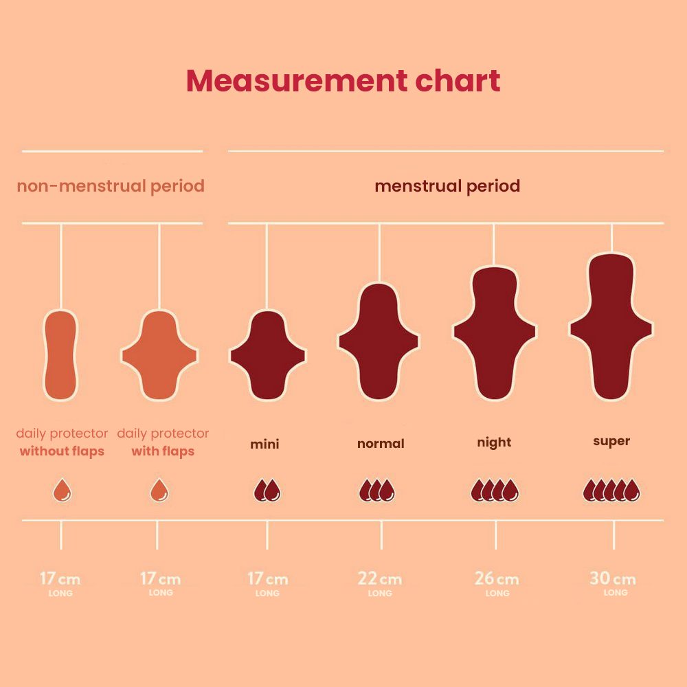 Panty protectors: measure about 17 cm, are 100% healthy and breathable, and ideal for use in non-menstrual periods of excess vaginal secretions or during pregnancy. All layers are pure cotton. They have 100% cotton outer layer, filling with 1 absorbent layer and inner layer in the Natural Comfort line (understand the difference between the lines below).