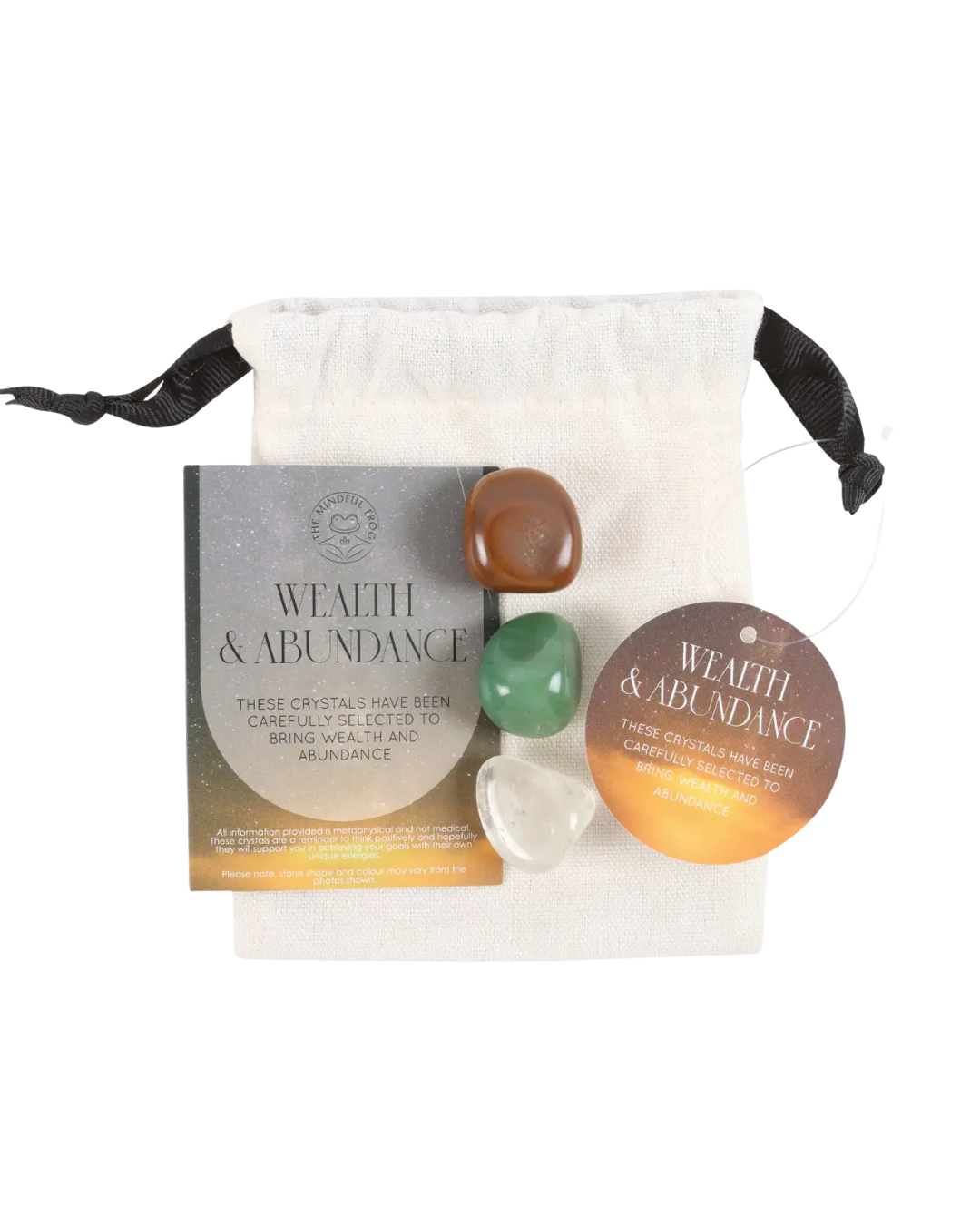Presented in a cotton pouch with an informative insert card, this set of crystals makes a thoughtful and practical gift for anyone seeking spiritual and financial abundance.