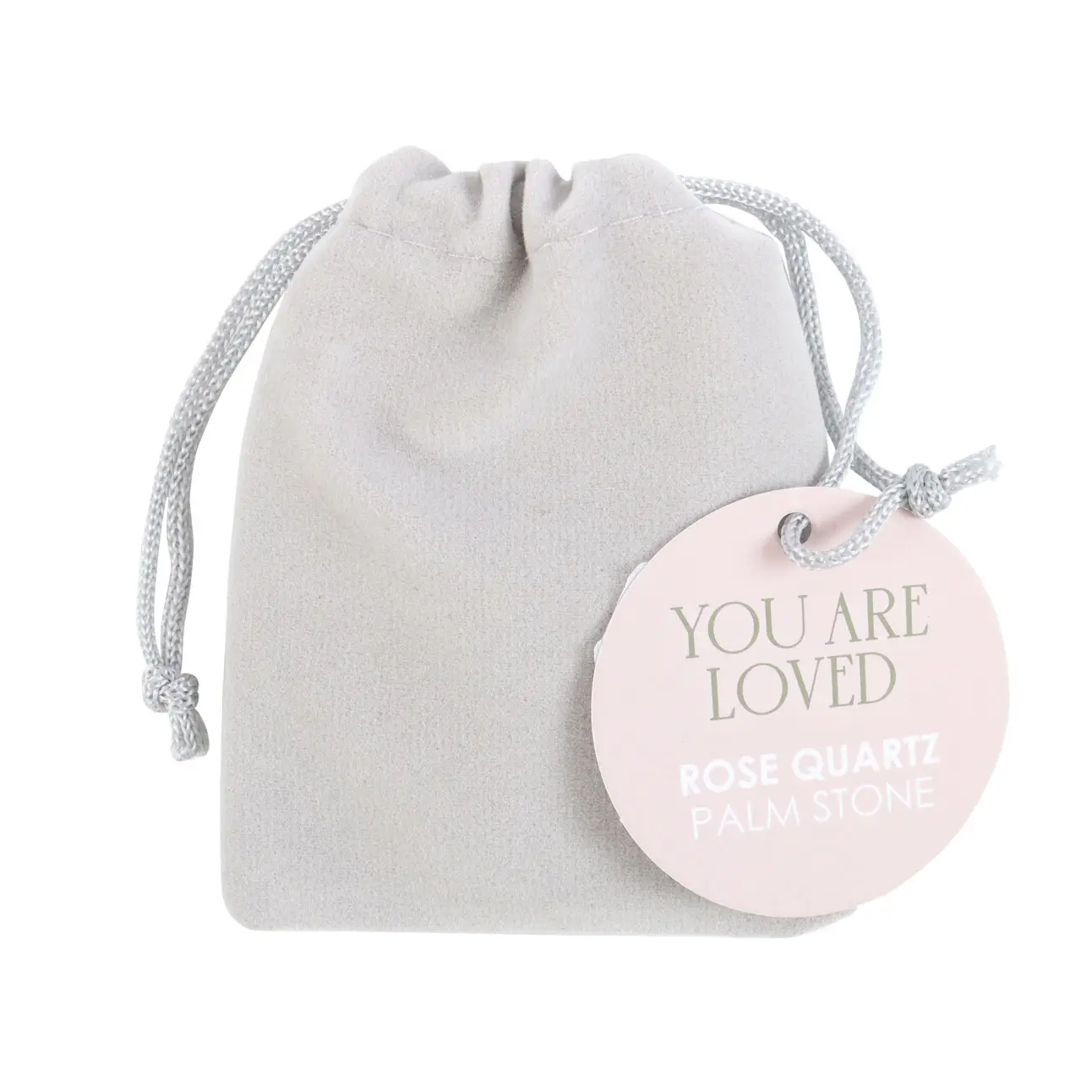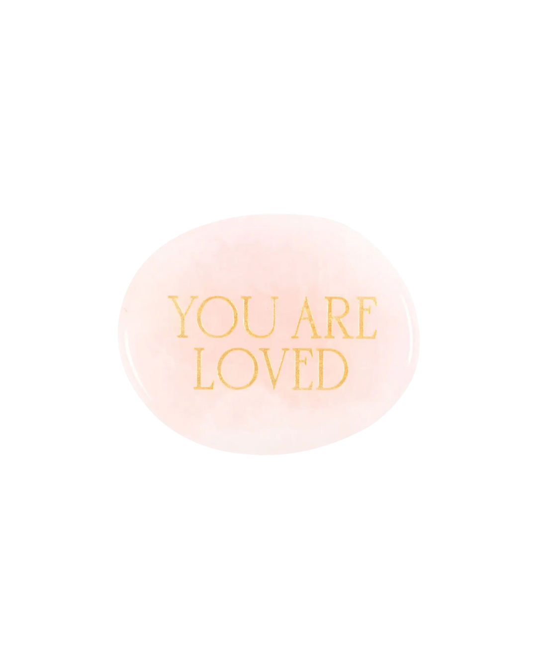 This healing Rose Quartz palm stone is accented with engraved gold-toned “You Are Loved” text, making it a meaningful token of love and care. The stone’s compassionate energy enhances its natural healing properties.