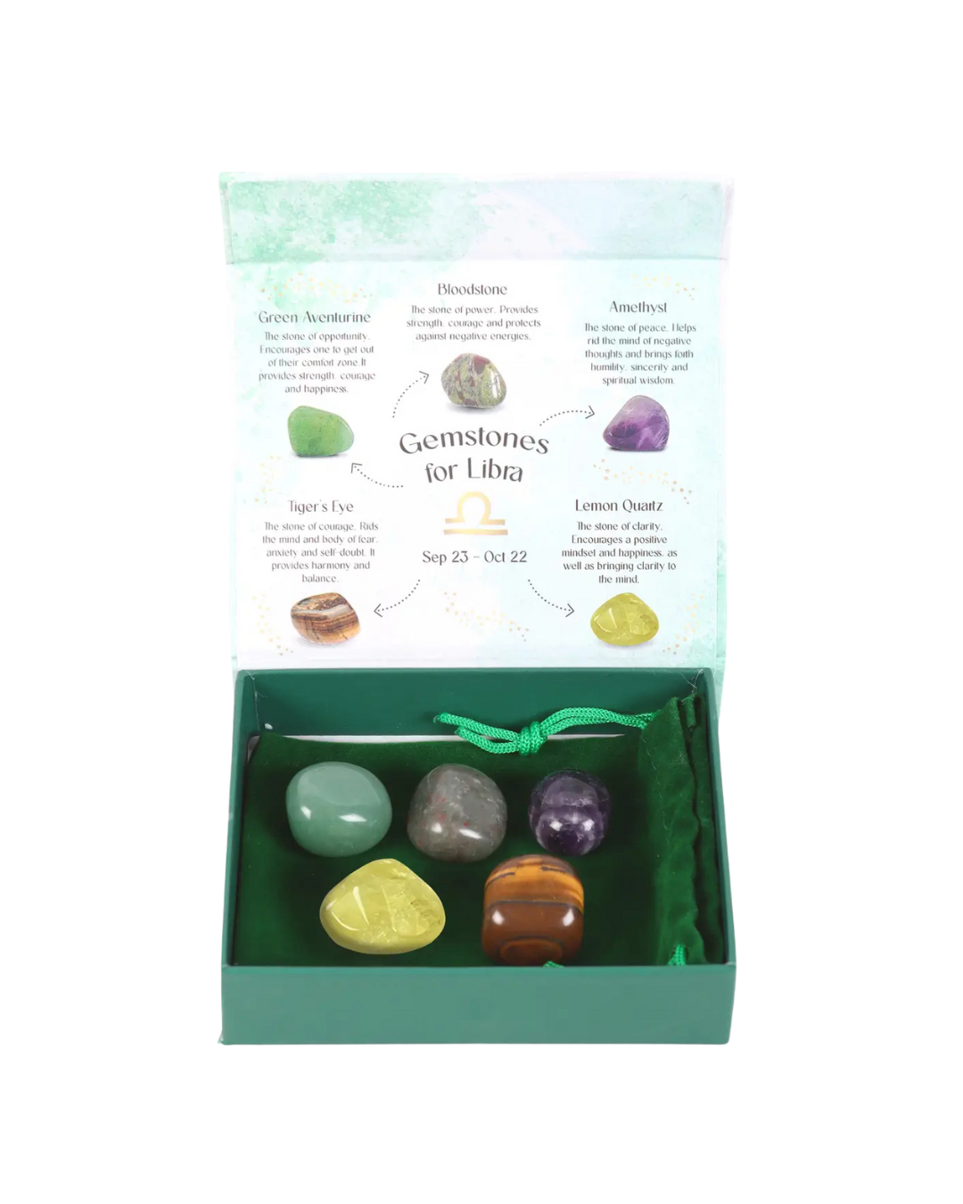 This stunning set of five crystal tumblestones is perfect for the generous, charming, and well-balanced Libra.