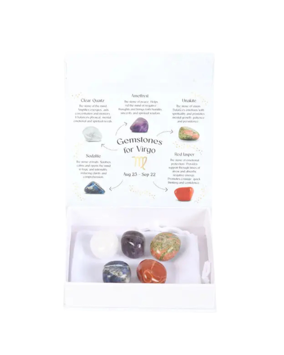 This stunning set of five crystal tumblestones is perfect for the reliable, hard-working, and organised Virgo.